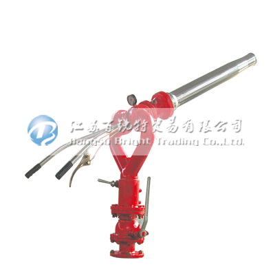 PP24C/PP32C型消防炮為單炮筒,即一支炮筒既可噴射泡沫又可噴射水,操作手柄實(shí)現(xiàn)炮仰、俯、回轉(zhuǎn)。